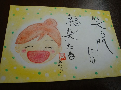 JUGEMテーマ:パステルアート 12月も半ばを過ぎ、もうすぐ今年も終わってしまいますね。 今年も1年あっという間でしたね。 来年はこの言葉をつねに頭におき生活していきたいと思っています。 笑う門には福来たる いつも笑い声が溢れる家には、自然に幸運が訪れる。 明るく朗らかにいれば幸せがやってくるという意味。 素敵なことわざですよね 応援お願いします。 人気ブログランキングへ パステリア書講座はこちらまで てらこや西谷 045-442-5489 http://nishiya.org/pasteria/ &n...