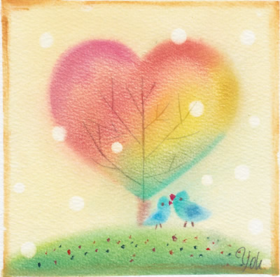 久しぶりのヨルツバメを控えて、 絵のサンプルを描きました。 今回来てくださるかたが「とり」さんなので、 鳥にちなんだ絵を描こうと思い、 最初は10月2日の重陽節にちなんで、 菊と山と鳥で行くぜ!とイメージしてみたのですが、 どうもしっくりきません。 今朝1枚、小菊がたくさん咲いている先に 鳥が二羽仲良くしている絵を描いてみたのですが、 なんだか気に入らなくて消してしまいました。 もう秋にはこだわらない! と、思い直して描いたのがこの絵です。 技法のポイントとしては、 準インストラクタ...