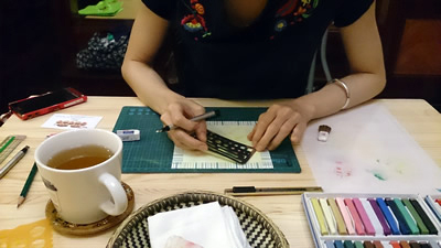 久しぶりのヨルツバメ、今日のお客様はハジメマシテのChikakoさん。まずは恒例の『まる』を左手で。今日はワタクシ何を思ったのか色を4色に設定したのですが、気がつけばこの色、以前にも全く同じで選んでたんじゃないかい?と思ったり。口が動いて手がなかなか動かず、これまた気がつけば、私何を描いてるんやろ?(まるには違いないんですけどね) Chikakoさんは話をしながら順調にぬりぬり、ぬりぬり。何やら愛らしい世界が出来上がっていく様子。わくわくしますね。今朝は台風の影響で湿度が70を超え、多少の湿気はパステルを...