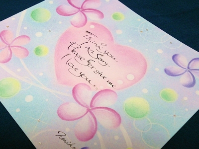 JUGEMテーマ:パステルアート koko先生のところで学んだ、パステルアートと書が入った『ホ・オポノポノ書』書いてある字は、誰もが幸せになる心をクリーニングするハワイの言葉“ホ・オポノポノ”。パステルアートと書を楽しみながら、心のクリーニング(^−^)お世話になった人のために感謝の意を込めて描くことに。仕上がって見てみると、なんだか愛着が湧いてしまった・・・(*_*;果たして、手放してプレゼントできるのか!? あはっ。 にほんブログ村