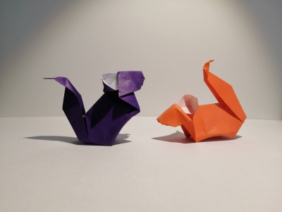 JUGEMテーマ:折り紙 「りす」 笠原邦彦 著 おり紙どうぶつ―パンダやラッコ、コアラもおれる (小学館のこどもカラー文庫―趣味・実用 (15)) 1985 紙:トーヨー 折り紙 徳用おりがみ 15cm角 23色 この本はかわいいのが多いのでお気に入りです。おなかのところを丸く整えたり耳の形を整えるってのは子供向けにしては難しいかもしれません。