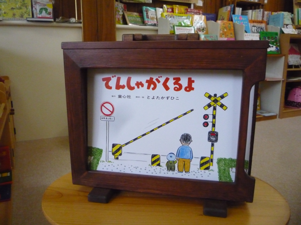 JUGEMテーマ:童画・絵本 こんにちは。絵本と雑貨の店「ゆめみる本屋さん」の老川です。 当店に紙芝居コーナーができました! 手作り(※私の手作りではありません)の温かみある舞台です。 画像に写っている作品は、 『でんしゃがくるよ』(脚本・絵/とよたかずひこ 童心社)です。 小さな踏切で、お父さんと一緒に、電車が来るのを待つ「ぼく」。 かんかんかん・・・の音が鳴り始めると、期待に胸が膨らみます(*^-^*) 紙芝居は、舞台がなくても楽し...
