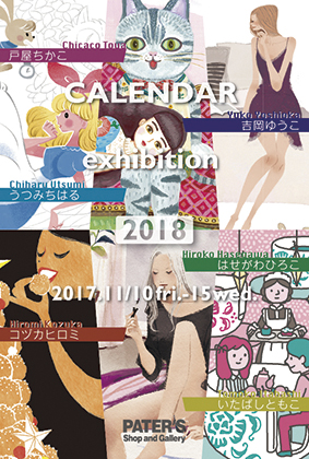 イラストレーター6人によるオリジナルカレンダー展 「Calendar exhibition 2018」11月10日(金)〜15日(水) (原宿ペーターズギャラリー)に参加いたします。 よろしくお願いいたします! ↓Facebookページのチェックもお願いいたします https://www.facebook.com/events/1459068147479894/ 「CALENDAR exhibition 2018」 2017年11月10日(金)12:00 〜11月15日(水)19:00 ペーターズ・ショップアンドギャラリー 〒150-0001 東京都渋谷区神宮前2丁目31−18