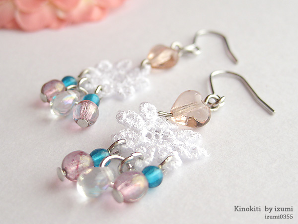 商品名:新品★ハンドメイド チェコビーズ使用 花レースとハートの可愛いピアス 商品ID:izumi0355 カラー:桃(ピンク) 作家:いずみ -*-*-*-*-*-*-*-*-*-*-*-*-*-*-*-*-*-*-*-*-*-*-*- お花の白いレースとビーズを使用した可愛いピアスです★ 耳元でゆらゆら揺れてとってもキュートです♪ JUGEMテーマ:ヤフオク