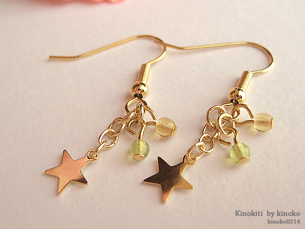 商品名:新品★ハンドメイド チェコビーズピアス 商品ID:kinoko0214 カラー:ホワイト 作家:きのこ -*-*-*-*-*-*-*-*-*-*-*-*-*-*-*-*-*-*-*-*-*-*-*- 色味のちがう緑のチェコビーズと星のチャームを組み合わせた、 可愛いピアスです★