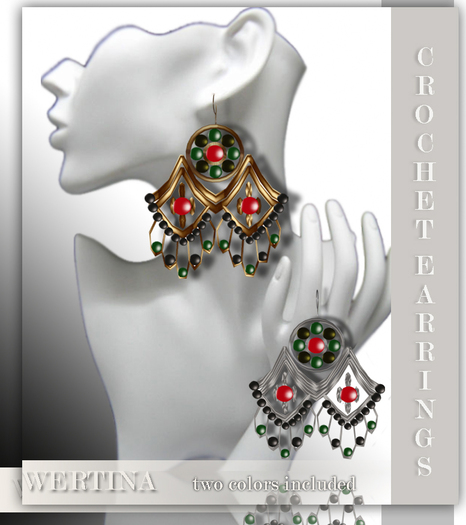 MarketPlace in SL Second Life Marketplace - WERTINA Crochet earrings https://marketplace.secondlife.com/p/WERTINA-Crochet-earrings/2676881 Group Gift (GG) Group - Wertina (L$0 to Join) .:Wertina:. http://maps.secondlife.com/secondlife/Gypsy%20Moon/234/147/25 Thank You ₍₍ ( ๑॔˃̶◡ ˂̶๑॓)◞♡ JUGEMテーマ:セカンドライフ