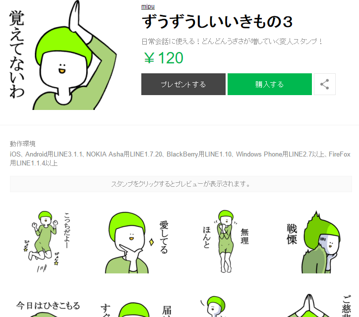 JUGEMテーマ:LINEスタンプ こんにちは! 「ずうずうしいいきもの3」、やっとリリースできました〜! 長かった…。 3月7日に審査申請してから、昨日の夜承認されたので、9日間かかりました。 その間、販売国の関係でのリジェクト一回でした。 でも無事リリースできてよかったデ〜ス。 この「ずうずうしいいきもの」、第一弾から見ると、どんどん体が肉々しくリアルになってきている事に気付きました…。 最初はもう少しポップな絵柄だったのに…。 次は多少軌道修正しようかと思います! ...
