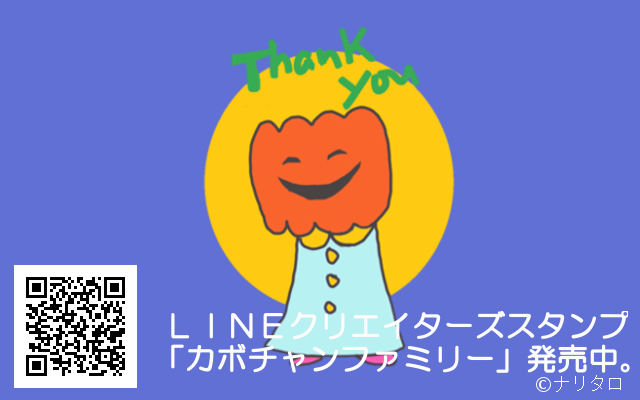 JUGEMテーマ:LINEスタンプ カボチャンファミリー ・Thank you カボチャンはハロウィンが大好きです。 カボチャンファミリーはカボチャンとお父さんのチチカボチャン、お母さんのハハカボチャン、バケゾウオジサンです。 LINEスタンプ「カボチャンファミリー」好評発売中! <いろいろなカボチャ、ハロウィン、パンプキン> ●そうめんカボチャ ・ゆでると果肉がそうめん状になるカボチャ 昨年TVに出演!人気急上昇!ツルっと食べられる不思...