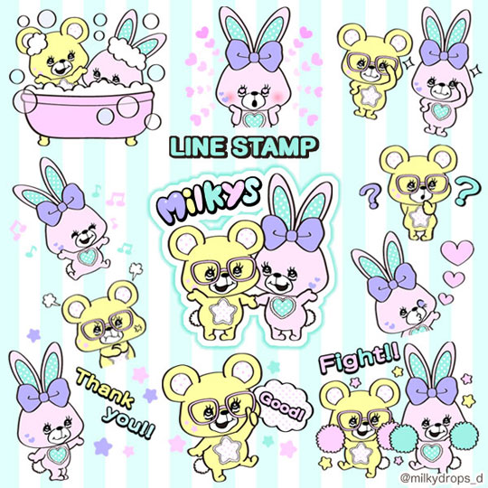 LINEスタンプ第10段『Milkys』をリリース中です。 春頃にリリースしたLINEスタンプです。 制作時間:26時間/Photoshop CS4 ⇒購入ページ:LINE STORE オリジナルキャラクターMilkysのスタンプです。 文字なしスタンプなのでついでに作った感じだったのですが、今リリースしているやつでこのスタンプが3番目くらいに売れてくれています。 無個性なキャラじゃなくてキャラクターとしてちゃんと考えた絵柄のものが売れてくれるのはとても嬉しいです! 時間があったら第二弾も作りたいな〜 *☆*:;;;:*☆**☆*:;;;:*☆**☆*:...