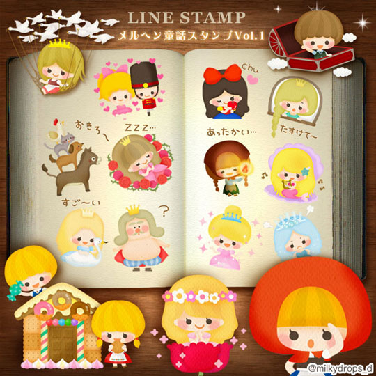 LINEスタンプ第12段『メルヘン童話スタンプ』をリリース中です。 これも夏頃にリリースしたLINEスタンプです。 制作時間:53時間/Photoshop CS4 ⇒購入ページ:LINE STORE 童話がモチーフのスタンプです。 ふちなしイラストで王道のカワイイものにしてみました。 英語バージョンもリリース中(海外のみ) *☆*:;;;:*☆**☆*:;;;:*☆**☆*:;;;:*☆**☆*:;;;:*☆* 現在リリース中のスタンプです。 ■⇒MilkyDropsのスタンプ一覧はコチラ JUGEMテーマ:LINEスタンプ