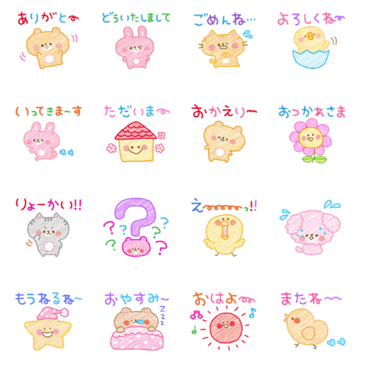 LINEスタンプ第11段『クレヨンたっちアニマルズ』をリリース中です。 夏頃にリリースしたLINEスタンプです。 制作時間:16時間/Photoshop CS4 ⇒購入ページ:LINE STORE クレヨンで描いたようなタッチのスタンプです! これもデコメで良く作っていたやつです。懐かしいな〜と思いながら作りました。 *☆*:;;;:*☆**☆*:;;;:*☆**☆*:;;;:*☆**☆*:;;;:*☆* 現在リリース中のスタンプです。 ■⇒MilkyDropsのスタンプ一覧はコチラ JUGEMテーマ:LINEスタンプ