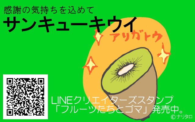 JUGEMテーマ:LINEスタンプ サンキューキウイ ありがとう。サンキューキウイは、 LINEクリエイターズスタンプ「フルーツたちとゴマ」のキャラクターです。 ありがとう。感謝の気持ちを込めてサンキューキウイ。 ●サンキューキウイ(1種類) ・「アリガトウ」 LINEクリエイターズスタンプ「フルーツたちとゴマ」発売中です。 <おいしいキウイの見分け方> 傷やへこみが無いキウイ。 薄い茶色のキウイ。 【NEWS】 LINEスタンプ新作6月6日に発売します! COMING S...