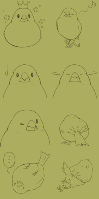 ラフが出揃ったので線画を作成。 文鳥さんは比較的線が単純なのでさらっと描けます。 フリーハンドでつるんとした文鳥さんならではの丸みを出すのが少し難しかったくらい。 颯爽と塗り作業へ。 選択範囲を取り(左)基礎の色入れ(右) 影付け(左)、効果や文字入れなどの仕上げ(右)という手順でもりもり塗っていきました。 数は多かったものの普段仕事で塗ってるような厚塗りをするわけではないのでわりとあっさり終了。 むしろここからひとつひとつ切り出してスタンプのフォーマットに当てはめて行く方がめ...