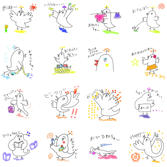 「ほのぼのトリっこさん〜」 LINE - クリエイターズスタンプで 私のスタンプリリースしましたわ☆ ↓こちらよりどうぞっ。 ほのぼのトリっこさん〜 タイヘンリリースまで時間がかかりましたが、、 (審査に2ヶ月?3ヶ月?) やっと、リリースできましたわ!! iPADで手書きしました〜。 ほのぼの出来る感じで描いたです。 実際、自分で使ってみて、、 ちょっと、もうちょっと、 こういう感じが欲しいぃ〜と 思った次第ですが・・。反省・・。 少しでも日常で〜ほのぼの出来ればな〜 ...
