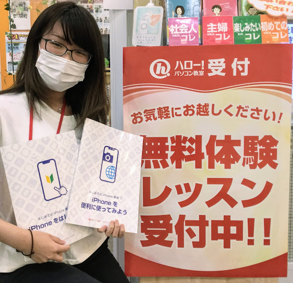 javascriptcview_on(); こんにちは! 大阪大東市の住道駅から徒歩5分 オペラパーク2Fにあるパソコン教室 ハロー!パソコン教室ポップタウン住道校の吉田です。 9月に入ったとたんに、台風の季節になりましたね。 7月までは梅雨、8月は暑い夏!そして9月は台風。と、 今年は、月ごとの急な季節の移り変わりに驚かされます。 来る災害に備えつつ、台風の季節になったとはいっても まだまだ暑いので空調やこまめな水分補給で体調にも気を付けていきましょう! 今回は、「はじめてのiPhone講...
