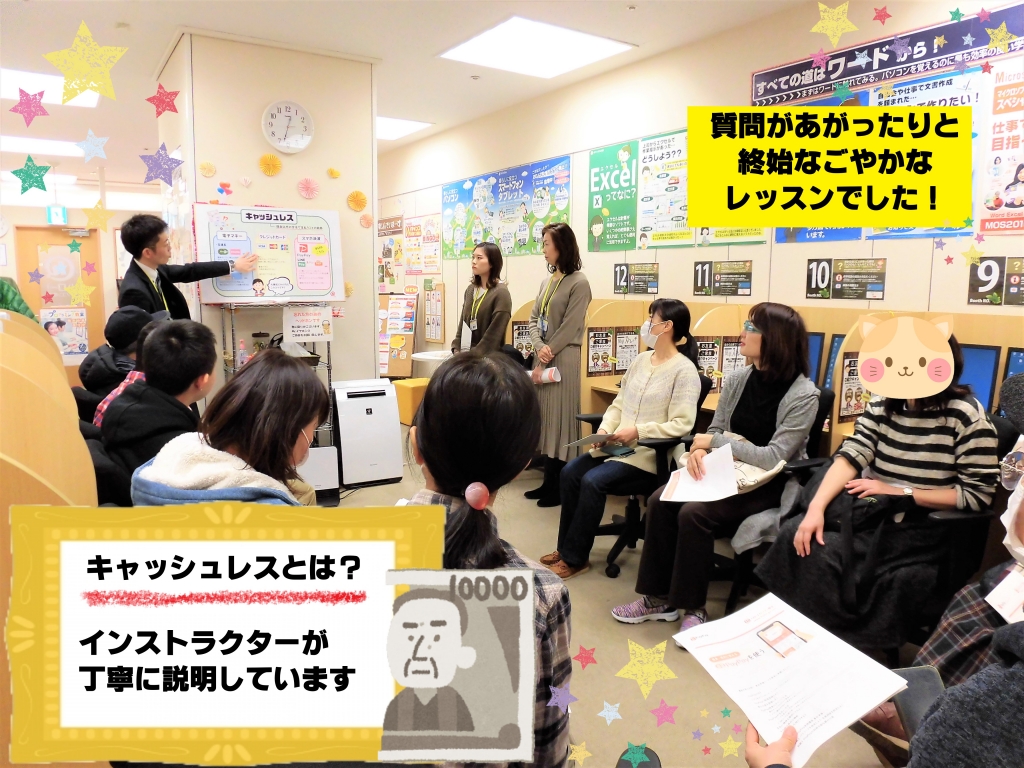 JUGEMテーマ:パソコン資格 JUGEMテーマ:転職活動 JUGEMテーマ:マイクロソフト JUGEMテーマ:スマホ こんにちは! 東武スカイツリーライン草加駅 徒歩1分 地元の方にたくさん通っていただいている ハロー!パソコン教室イトーヨーカドー草加校 教室インストラクターの宇藤(うとう)です。 先日の2月11日に開催した、グループレッスンの様子をご案内します! 「キャッシュレスを使ってみよう」 〇〇ペイ、よく耳にするようになりましたね。 興味はあ...