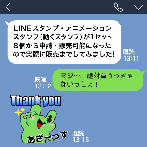 JUGEMテーマ:LINEクリエイターズスタンプ 2016年10月6日より、LINEスタンプ・アニメーションスタンプ(動くスタンプ)が1セット8個から申請・販売開始になったので、実際に販売してみました。 なんでも写真スタンプも受付開始したそうで、どんどん進化していきますねLINEは。 新しいLINEスタンプ・アニメーションスタンプの販売個数・価格 【LINEスタンプ(静止画)の販売個数・価格】 ◯販売個数 ・8個 ・16個 ・24個 ・32個 ・40個 ...