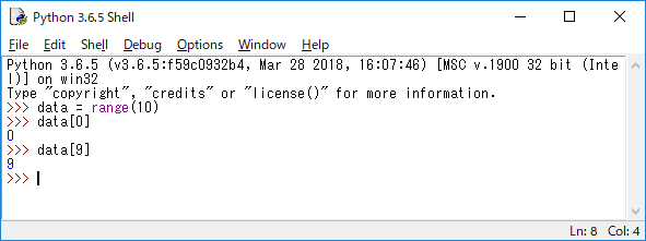 JUGEMテーマ:python レンジはリストやタプルの様に加算・乗算による算術演算はサポートしていませんがシーケンスの仲間なのでシーケンス演算をサポートしています。 構文 値 in レンジ 値 not in レンジ レンジの中に値が含まれているかどうかを調べます。inは含まれていればTrue、not inは含まれていたらFalseになります。 構文 レンジ[開始位置:終了位置] レンジの中から指定した範囲の値をレンジとして取り出します。 構文 len(レンジ) レンジに用意されている要素の数を調べます。 構文 min...