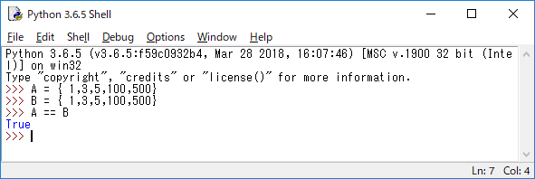 JUGEMテーマ:python セット同士で比較するための演算が可能です。セットは集合に相当するデータ型です。集合を理解していると、これらの演算の理解もしやすいです。 ●セットの比較演算 セットには2つのセットを比較するための演算が用意されています。これは比較演算子を使って行うことができます。AとBのセットを比較する形で整理しましょう。 構文 A == B AとBは同じ(含まれる値が全く同じ) 構文 A != B AとBは異なる(含まれる値が違っている) 構文 A < B AはBに含まれる(Aの値はすべてBに含ま...