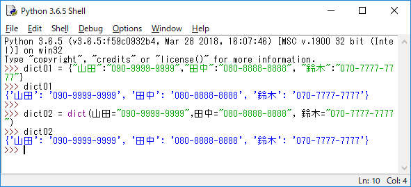 JUGEMテーマ:python ここまで、大きく分けて2種類のコンテナについて説明してきました。1つはシーケンスの仲間。これはインデクスという番号を付けて値を管理するものでした。もう一つは集合(セット)。これは保管されている値を一つ一つ指定するような機能は持っていませんでした。 保管している値をここに取り出して操作したい場合は、シーケンスならインデクスを使うことになります。しかし、この「番号で整理する」というやり方は順序づけて値を管理するにはよくても、データの内容がわかりやすいものではありません。 例...