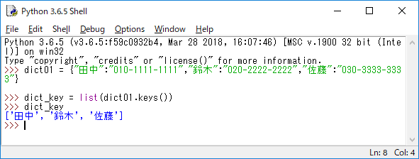 JUGEMテーマ:python 辞書はミュータブルなコンテナで、自由に値を操作できますがインデクスを使わない(つまりシーケンスでない)ためシーケンス演算は原則として使えません。利用できるのは以下のものです。 辞書に使える関数 関数内容 len要素数を得る。 minキーワードの最小値を得る。 maxキーワードの最大値を得る。 値 in 辞書キーワード(値)があるかどうか 値 not in 辞書キーワード(値)がないかどうか 構文 辞書.keys() すべてのキーワードを得る。 構文 ...