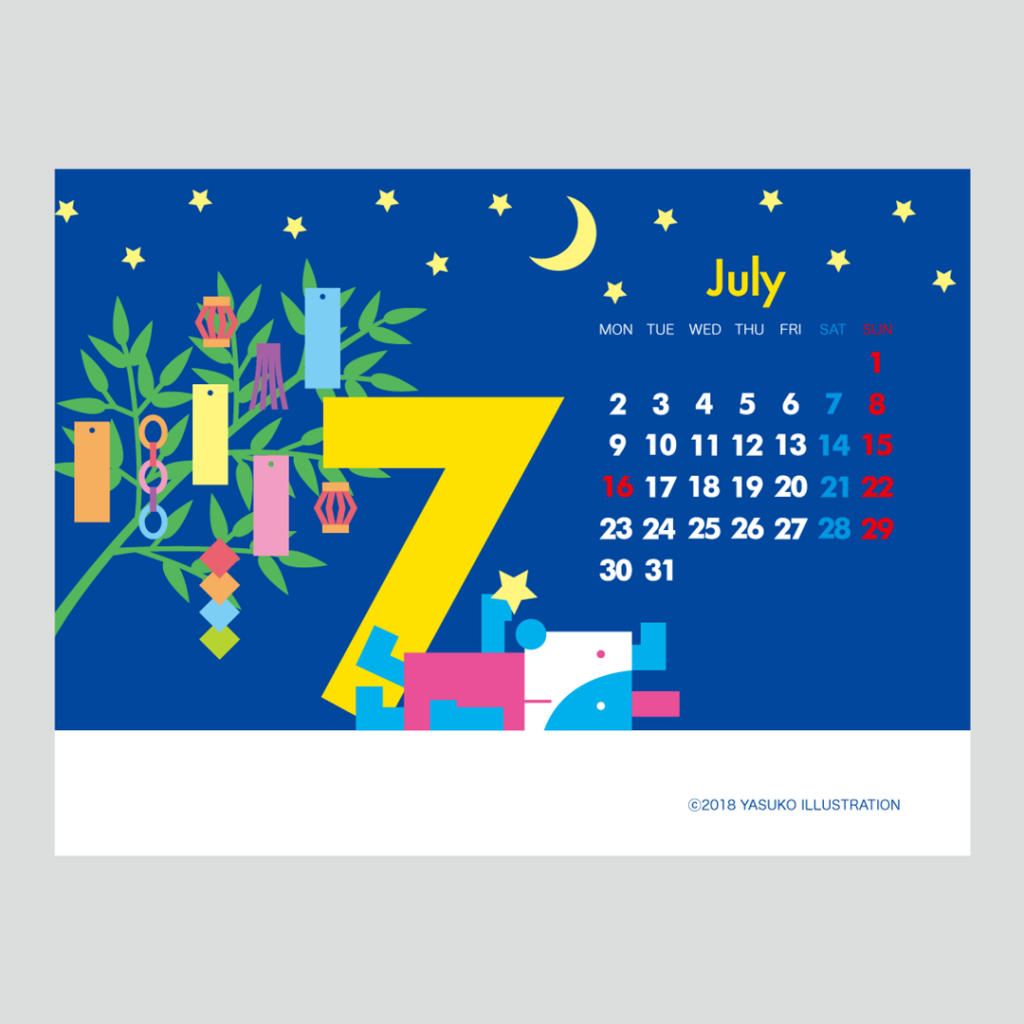 JUGEMテーマ:無料ダウンロード素材 「7月は、夜空を見上げてお願い事をしてみよう…☆」 今日は7月7日、“七夕”ですね。 先ほど地震が起こり、とても怖かったです。 先日からの豪雨も含め、改めて自然災害の恐ろしさを痛感しました。 平和な日常を願って、 7月のカレンダー付きイラストを制作してみました。 こちらはお手持ちのパソコンやスマートフォンの壁紙として、 無料でダウンロードできますので、よろしければご利用下さいね☆ &n...