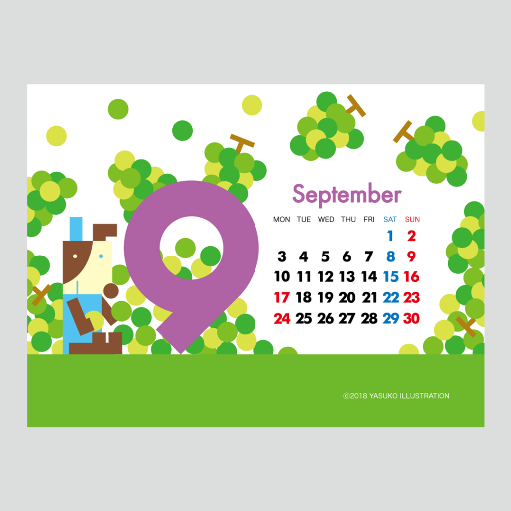 JUGEMテーマ:無料ダウンロード素材 「実りの秋。平和な日々を願う9月…。」 9月に入ってから、関西での台風…北海道での地震…と、 立て続けに大きな災害が起こり、 被災された皆様には心よりお見舞い申し上げます。 身心共に不安な日々が続き、大変お辛い状況だと思いますが、 一日も早い復旧を願っております。 皆様の心と体の平和を願って、爽やかで優しい色味の カレンダー付きイラストを制作してみました。 お手持ちのパソコンの壁紙...