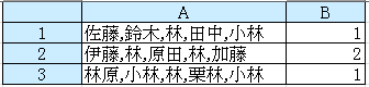 JUGEMテーマ:PC関連 「佐藤,鈴木,林,田中,小林」など、カンマ区切りの名前の中から、林さんだけを数えるには、以下の様にします。 =(LEN(","&I3&",")-LEN(SUBSTITUTE(","&I3&",",",林,","")))/LEN(",林,")