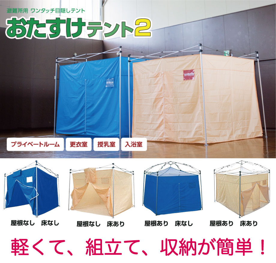JUGEMテーマ:ホームページ作成 避難所用 ワンタッチ目隠しテント おたすけテント2 プライベートルーム、更衣室、授乳室、入浴室に 集団非難場所でのプライベート空間や 着替えや医療スペースに 被災地ではとにかくいろいろなストレスを感じる状況でしょう。 そのような状況の中、プライバシーの守れる1家族分の空間があれば どれだけストレスが軽減できるでしょうか。 避難は長時間におよぶ可能性が十分にあります。 他人との適度な距離の確保、視線の遮断の...