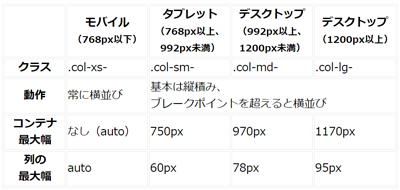 グリッドシステム:HTML tag css JUGEMテーマ:HTML,XHTML、CSS <div class="row"> <div class="col-xs-6 col-sm-4 col-md-2 col-lg-2"> </div> </div>