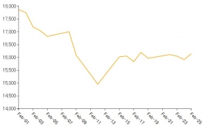 JUGEMテーマ:JavaScript 前回まで、3回に分けて D3.js による折れ線グラフの作成方法を紹介してきました。その際に 2 月の日経平均株価データ (日毎の始値・高値・安値・終値データを含むCSVファイル) を読み込んで折れ線グラフを作成していましたが、せっかくなので D3.js を使ってローソク足チャートを作成してみました。 ローソク足チャート(ローソクチャートとも言う)は、株価の変動をビジュアル化する方法の一つです。ローソク足チャートでは、日毎の始値と終値を長方形で示し、その上と下にその日の高値と終値を線...