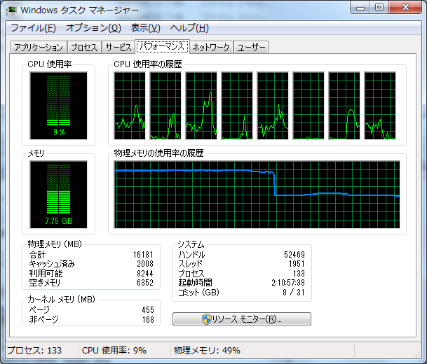 マルチプロセスで動くようになったので、動作は軽くなっているのだが、ふとタスクマネージャを見ると1つのプロセスあたり1GBほど使っていた(笑)。 Firefox を再起動して解決。 JUGEMテーマ:Firefox
