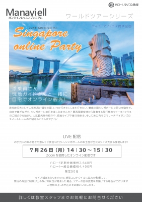 こんにちは。 ハロー!パソコン教室四条烏丸校の永見です。 6月に入りすっかり暑くなりましたね。 また、すっきりしない空模様が続き、梅雨を 実感している毎日です。 布団も干したいのですが、すぐに天気が変わるので 中々干せない毎日が続いております・・・・ そんな梅雨空を吹っ飛ばす、7月のオンライン講座を ご紹介いたします。 旅行が趣味といった方は多いと思いますが、 今この時期でも手軽に海外旅行へ行けるチャンスです! 自宅に...