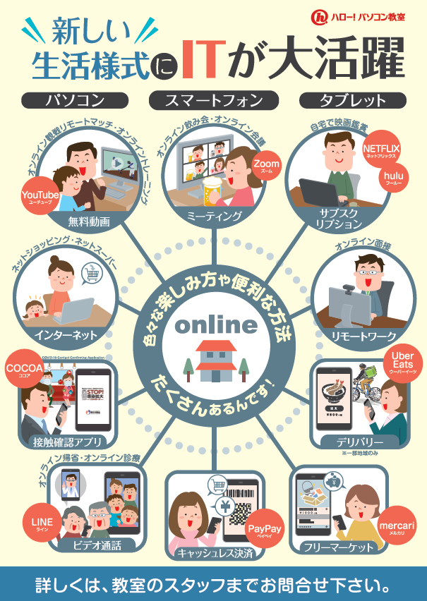 JUGEMテーマ:パソコン教室 JUGEMテーマ:パソコン資格 JUGEMテーマ:子どもの習い事 JUGEMテーマ:パソコン 国道36号線沿いの好アクセス、無料駐車場も完備♪ イオン旭川永山内のハロー!パソコン教室イオン旭川永山校、インストラクターの成田です。 生活様式がどんどんと変化していき、 オンラインで...や、 リモートで...という言葉もよく聞かれるようになりました。 お仕事でも私生活でも、インターネットの活用が重要視され、パソコンやスマホの上手な使い方は生活に必須となっていま...