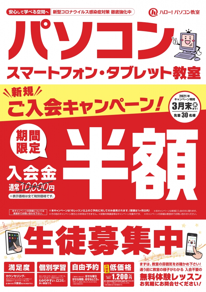 ハロー!パソコン教室 六甲校(神戸市灘区) | 2021.04.21 Wed 15:26