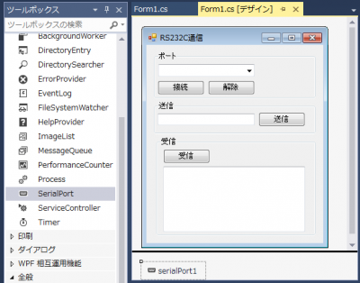 JUGEMテーマ:プログラミング 組み込みソフトウェアの開発の際には、大概、シリアル通信機能を搭載します。 シリアル通信を外部機器とのやり取るをする上で大切な機能です。 デバック作業をする際にもとても役立ちます。 PC側はOSI参照モデルの物理層に位置づけられるRS232C通信を使用します。 それでは、早速、アプリケーションを作成しましょう。 ボタンやテキストボックスの作成方法は、C#言語(2)−アプリケーションを作成してみるを参考にして下さい。 下記のようなアプリケーション...
