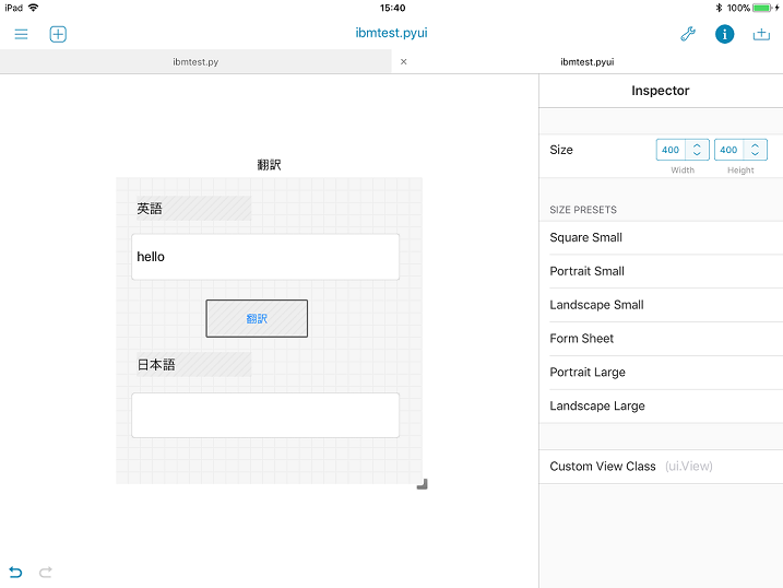 前回の続きです。 前回は、iPadで作っていますが、デスクトップ(Windows)でも、簡単にできます。 こちらは、UIはTkinterを使っています。Tkinterについては、Visual StudioでPythonを使ってみるで説明しています。 基本的には、プログラムの内容は前回と同じです。 import tkinter import requests def button_click(): url = "https://watson-api-explorer.mybluemix.net/language-translator/api/v2/translate" ei...