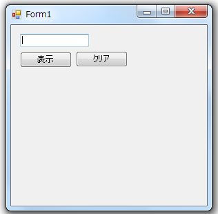 JUGEMテーマ:プログラミング 前回、C#言語を使用する為の開発環境(Visual Studio)の準備をしました。 今回は、早速、アプリケーションを作成してみましょう。 作成するアプリケーションは下記のようなダイアログになります。 表示ボタンを押すと、テキストボックスにHelloと表示して、クリアボタンを押すと、テキストボックスを空欄にするアプリケーションです。 まずは、新規プロジェクトの作成を行います。 メニューより、ファイル、新規プロジェクト作成を選択...