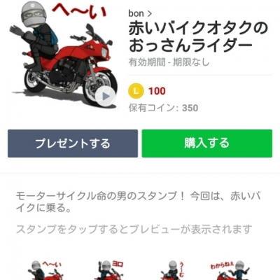 なんだか黄色が人気あったので、赤もリリース! いつまでもバイク乗りである、ライダーのために.... http://line.me/S/sticker/1396673 よろしく!です。 JUGEMテーマ:ラインスタンプ