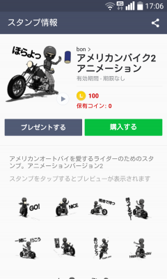 アメリカン!マスクしてるほうのスタンプね。 バイク乗りのスタンプの中でも、最も人気あるので 動くアニメーション化! 挑発的なスタンプも入れていきました。 仲間どうしで、たわむれてくださいね。 仕事...思うように進行しない中 作っておいたラインスタンプがリリースされるのは、楽しみでいいわぁ。 バイクに乗れなくても、バイクに携わっているような...。 あ、アドレスね。 http://line.me/S/sticker/1313335 ↑こちらで...