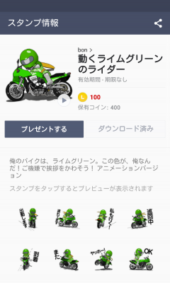 豪雨つづきますね。 バイクの乗れない日々が....だらだらと続いてる。 動くスタンプのライムグリーン仕様 バイク乗り、ニンジャ乗りのスタンプです。 http://line.me/S/sticker/1315876 容量調整にコツがいる動くスタンプですが いい感じで完成しました。 ライムな人も そうでない人も 是非、使ってね! JUGEMテーマ:ラインスタンプ