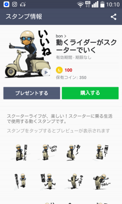 ラインスタンプね。 動くタイプの! スクーター、ベスパ、好きな人用。 バイクスタンプ http://line.me/S/sticker/1324255 よろしくね JUGEMテーマ:ラインスタンプ