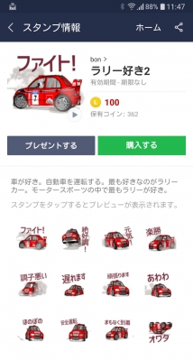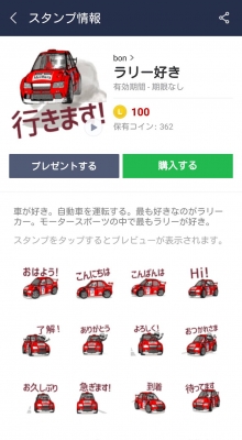 車のスタンプね。 ラリー好きでしょ?だったらこれです! https://line.me/S/sticker/8488566 ガンガンいってください! ラリーカーに乗って! JUGEMテーマ:ラインスタンプ