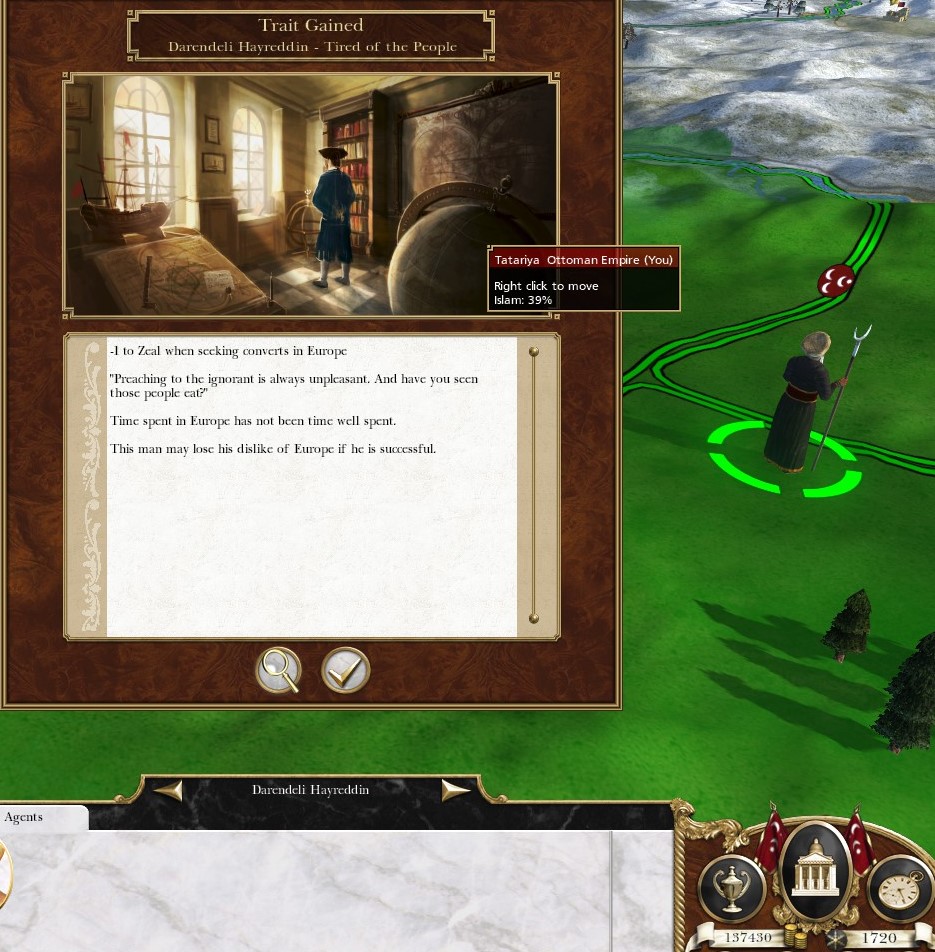 JUGEMテーマ:PCゲーム -第42ターン(1720年冬)- <国内のお知らせ> ・ボスニア州に新町スロットBijeljinaがオープン ・ドン軍管区で布教していたイマームのハイレディン氏に-1の特徴追加 まぁ、長い人生、上手くいかないこともあるって。そんなに気にしなさんな。まずは一杯・・・・ っと、イスラム教徒は原則禁酒なんでしたっけ。 <このターンの戦略> 前ターンで、中立国であるポーランド=リトアニアがオーストリアの首都・ウィーンを...