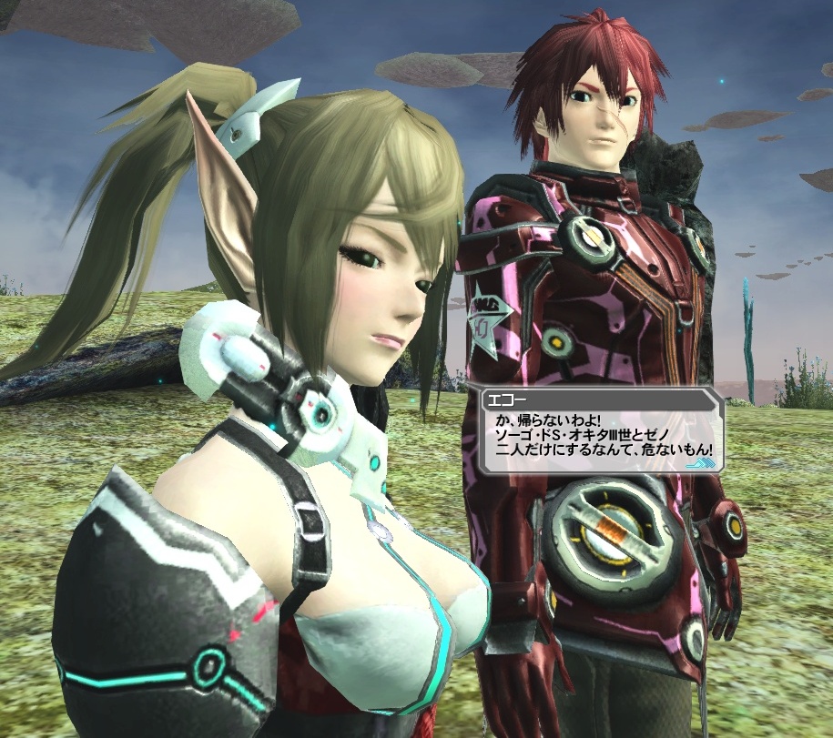 JUGEMテーマ:ファンタシースターオンライン2(PSO2)ちょっとアウトなタイトルを付けてしまいました。でも間違いじゃないから話を進めます。相変わらず、肩に乗る我が子にデレデレです。そして、デレデレなカップルがもう一組。左の私たちのことは置いといて…。右のお二人のことです。お似合いですねー幸せそうですねー。愛がいっぱいの雰囲気のまま、新人さん歓迎会が始まりました。大丈夫だったかなー?引いてないかなー?近寄ってSSを撮ろうとしたら、すぐに逃げられてしまいました。足が速いんですね。(?)久しぶりに、チームルー...