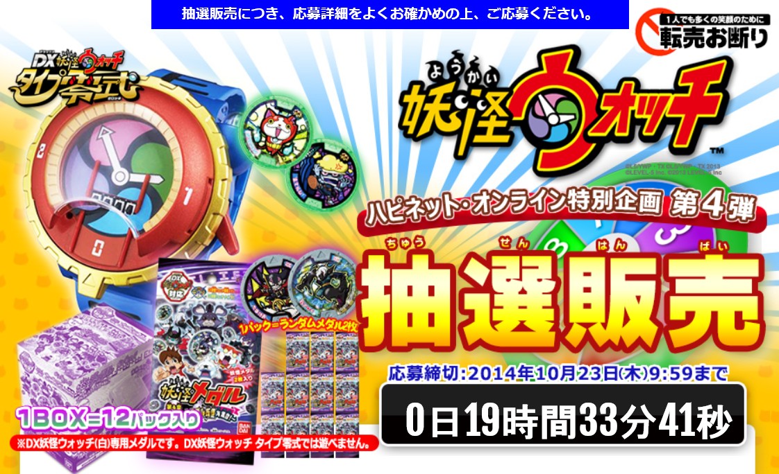 JUGEMテーマ:妖怪ウォッチ 締切が木曜日に迫っています。 応募してない人してみてはどうでしょうか。 昨日コンビニ(ローソン・サークルKサンクス)で4章と、古典ノ弐が販売しているとお知らせしましたが買えましたでしょうか。 私は1店舗当たり4章を1〜2パックずつ買い回り、計13パック買う事が出来ました。 まだ開けてませんが・・・(;´・ω・) 何かもったいなくて開けれません。