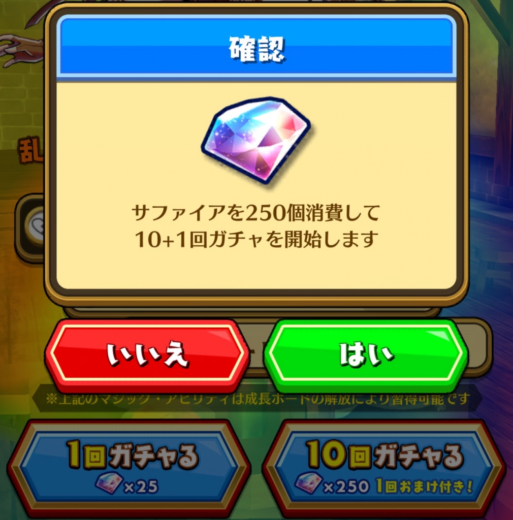 JUGEMテーマ:スマホゲーム スマッシュ&マジック(スママジ)にマジでハマっているマサマサです! 今回はスマホゲームの課金についてお話しようと思います。 『効率よくサファイアを集めてお金をかけずに10連ガチャを回す裏ワザ!』 については最後に説明してあるので、是非最後までお付き合いくださいm(__)m 《スママジのガチャについて》 みなさんご存知のとおりスママジは、 下の写真のように、ガチャの回数に応じた数の サファイアを消費することでガチャを回すことができ...