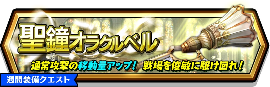 にJUGEMテーマ:スマホゲーム マサマサです! 8/25(金)より新たなクエスト「聖鐘オラクルベル」が登場しました! 開催期間:2017年8/25(金)15:00〜9/1(金)14:59 このイベントでは、僧侶専用の武器「聖鐘オラクルベル」が手に入ります。 「軽量武器」のアビリティが必ず付き、通常攻撃の最大移動量がアップします! これにより味方のピンチ時に救出しやすくなります。 また、敵の背後を取りやすくなり状況によってはチャンスを生み出します! 「オラクルベ...