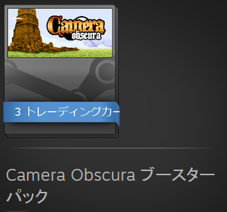 JUGEMテーマ:STEAM ちまたでは、本日20日中に ポケモンGOのサービス開始ではないか?? そんな噂で盛り上がってますが・・・・ STEAMから、ブースターパックが来てました^^ このゲーム結構オススメ アイデアが良いのもあるけど 主人公キャラのドット絵が、かわいいのですよ^^ 値段の割には、かなり楽しめます トレカ狙いでも元は取れるので コストパフォーマンスは高いです Camera Obscura http://store.steampowered.com/app/341500/?snr=1_5_9__205 安かったら、オススメ...