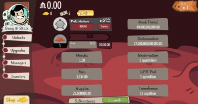 JUGEMテーマ:STEAM AdVenture Capitalist ひたすら放置とリスタートの日々なんですが ふと下のほう見ると、MISSON CONTROLってのがあり、触ってみたら・・・ いつの間にか、月へ行けるようになってましたw ついでに、火星のやつもクリック マネーで時短できるみたいだけど、そのまま放置 そして、月へ・・・ どうやら、また最初からみたいですな・・・・ 肝心のエンジェルさんも、0から始まります>< アンロックのタイミングが、地球と全然違うので 効率とか、よく分からない状態になって...